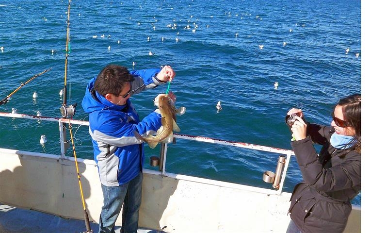The Puffin season is mainly from May 15th to August 15th and during that period trips include sightseeing around the Puffin islands where thousands of Puffins are inhabitant. Many times spectacular photo shoot opportunities are created during these moments. On the way back to harbor the captain stops the boat for skilled fishermen or first timers to try their luck fishing. All the fishing gear needed is provided and this often creates a lot of excitement on board as you are given a chance to catch yourself a nice meal before you get back to harbor. Crew members sometimes prepare the fish on board to serve a nice sushi for curious passengers. But all catches can be cooked “fresh from the sea” and dined at the restaurant Lobster-Ship in the Old Harbor for reasonable price.