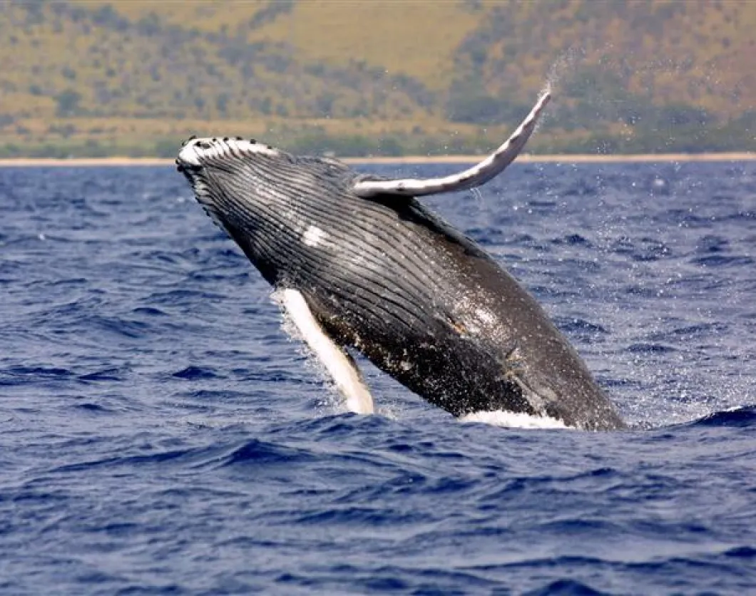 - Humpback Whale. With a skin covered with warts, bumps, and encrusted barnacles, its average length and weight is 13 meters and 31 tonnes.
